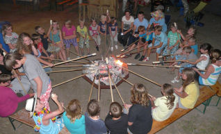 Der Abend wurde mit Gesang am Feuer verbracht, wobei die Kinder Stockbrot backen konnten. Später gab es begleitet von Fackelträgern noch eine Nachtwanderung.